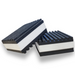 The anti-vibration pads are structured with a high/low ribbed surface layers, and a three phase "sandwich" construction to allow absorption of heavy vibration, and support significant weights - each 150mm pad can handle up to 150kg of load.
